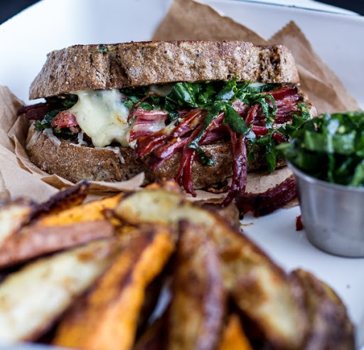 Savory Corn Beef Brisket + Irish Cheddar French Toast with Kale Pesto Slaw