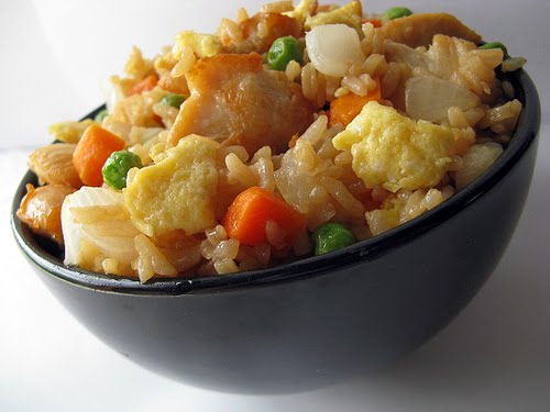 5. Stir in reserved cooked egg whites, cooked brown rice, peas and soy sauce; cook until heated through, stirring once or twice, about 1 minute.