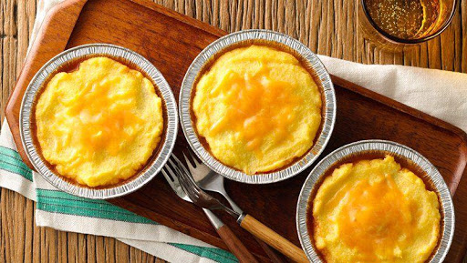 To make in baking dish, spray 8-inch square (2-quart) glass baking dish with cooking spray. Spoon meat mixture into baking dish; spoon and spread cornmeal mixture over top. Freeze. When ready to serve, bake uncovered at 350°F 1 hour 30 minutes to 1 hour 40 minutes or until center is hot and edges are bubbly and hot. Sprinkle with cheese; bake 3 to 5 minutes longer or until cheese is melted. Cool 5 minutes before serving.