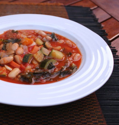 Añadir el calabacín, la col rizada y pan. Dejar cocer durante 15 minutos