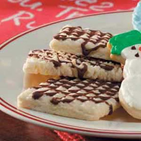 Using a cookie press fitted with a bar disk, form dough into long strips on ungreased baking sheets. Cut each strip into 2-1/4-in. pieces (do not separate pieces).