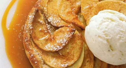 Warm pastry with thinly sliced apples, drizzled with caramel sauce, and finished with vanilla ice cream.