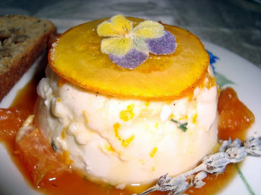 Lavender-Shallot Panna Cotta with Burnt Orange Sauce and Caramelized Oranges 1 Picture