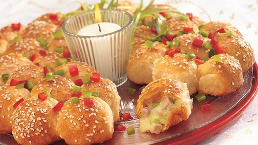 Build this pull-apart wreath out of refrigerated biscuit dough wrapped around a ham and cheese filling.