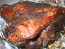then reduce temperature to 300º for about 4 hours or so - DO NOT TURN MEAT.