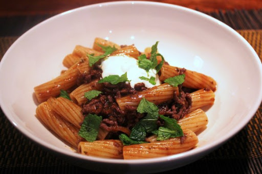 Agregue el rigatoni cocidos en la salsa y se apaga el fuego