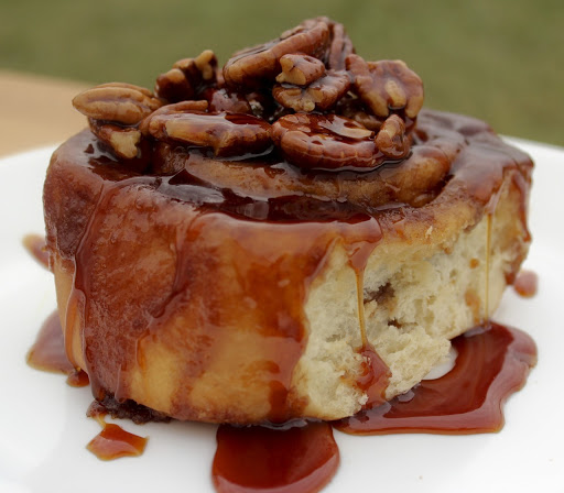Bake uncovered in preheated oven until golden 30 to 35 minutes. Immediately invert pan on heatproof serving plate. Wait for 1 or 2 minutes before removing pan, so that caramel drizzles over rolls.