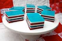 This Jello recipe is easy to make, but a bit time consuming because you must wait for each layer to set before adding the next. (To save time, make three layers instead of the seven layers you'll find instructions for here.) The effort is worth it, though, when you see the reaction to this patriotic treat.