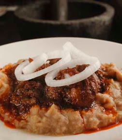 Este tradicional platillo mexicano se puede servir como plato fuerte acompañado de arroz blanco o sobre frijoles refritos en el tradicional plato llamado “frijoles con veneno”.