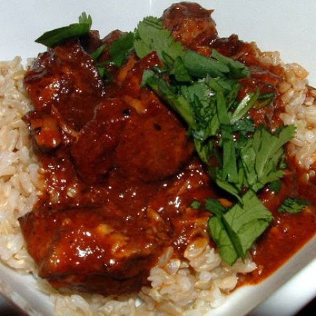 To replicate the subtle fruity quality of the dried New Mexican chiles traditionally used in this dish, we turned to raisins, which we soaked in hot coffee to soften before making a puree.