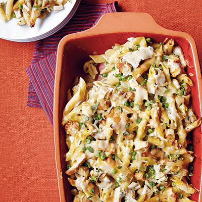 Kids Can Help: Kids can combine the sauce, turkey, peas, onion mixture, and mushrooms with the pasta, and then sprinkle the cheese on top before it bakes.