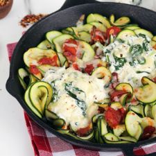 Toss to combine, serve with freshly shaved parmesan cheese. Top with Parmesan Crusted Chicken or Parmesan Crusted Tilapia.