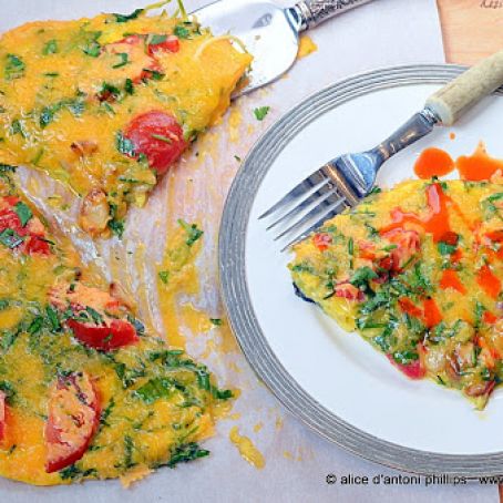 Broccoli Slaw Tomato Garlic & Chives Egg Skillet Pie