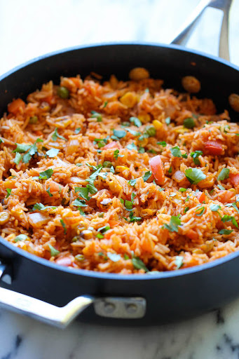 Stir in tomato sauce and chicken broth, and bring to a simmer, about 2 minutes. Stir in corn, carrots, peas, chili powder and cumin; season with salt and pepper, to taste. Bring to a boil; cover, reduce heat and simmer until rice is cooked through, about 13-16 minutes. Stir in tomatoes.