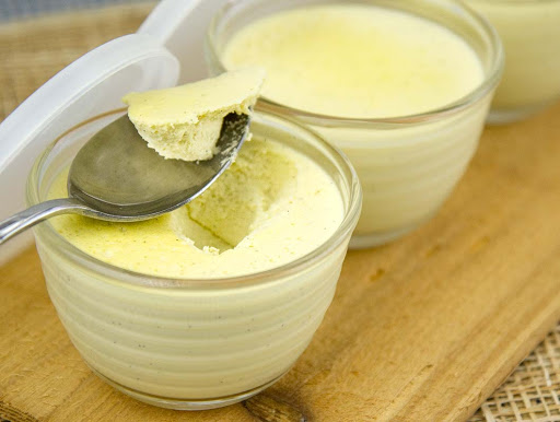 Split the vanilla bean in half. Scrape the seeds from the vanilla bean. Add the bean and seeds to the milk and cream.