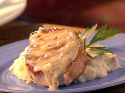 Pork Chops in Creamy Champagne Sauce with Rustic Garlic Mashed Potatoes