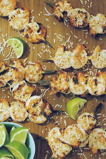 A squeeze of lime adds zing and toasted coconut contributes crunch to this easy make-ahead crowd-pleaser. You'll need at least 24 wooden 6" skewers.
