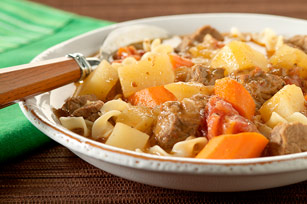 ADD potatoes and carrots; simmer, covered, 45 min. or until meat is tender and sauce is thickened, uncovering after 30 min. and stirring occasionally.