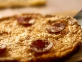 Once the cheese on top is melted and looks burnished fold on the crustless pizza, take it out of the oven and serve, cut into slices. A green or tomato salad on the side would not be a bad idea...