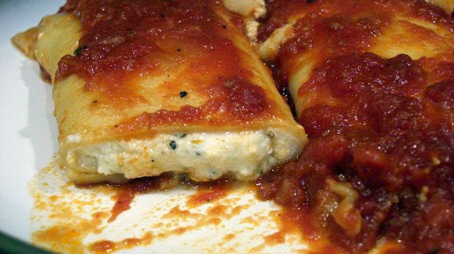 Mix all ingredients together in a large bowl. Prepare your baking pan by placing a layer of your favorite tomato sauce on the bottom of the pan. Place some filling down the center of the shell. Roll tight. Place the manicotti in the pan, close to each other. Repeat with all the shells. Then sprinkle another cup of grated parmesan cheese on top. Then another layer of sauce. Bake at 350 until heated through, about 45 minutes.