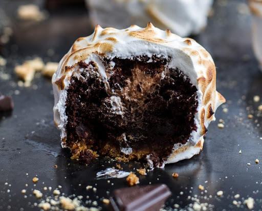 Meringue Encased Chocolate Mousse S’more Cakes