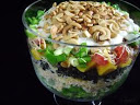 In medium bowl stir together mango, red pepper, green onion, cilantro and lime