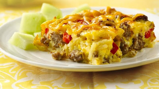 1 Heat oven to 400°F. Grease rectangular baking dish, 13x9x2 inches. Cook sausage, bell pepper and onion in 10-inch skillet over medium heat, stirring occasionally, until sausage is no longer pink; drain. Stir together sausage mixture, potatoes and 1 1/2 cups of the cheese in baking dish.