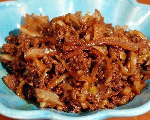 Fry the beef, garlic, leek and onion in a heavy pan with a little bit of oil. After a few minutes, add the cabbage and leave to fry for five more minutes or so. Add soy sauce, vinegar and sugar, and let it cook for five minutes.