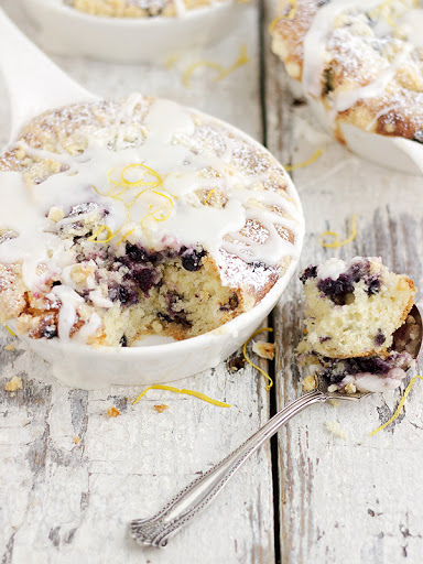 Bake for 45-50 minutes (for a 9-inch pan – much less for muffins or small ramekins), or until lightly golden and firm on top. Remove from oven and allow to cool. Once cooled, drizzle with lemon glaze.