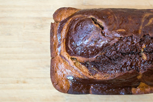 Here we’ve got something that reminds me of pressing my face against the glass dessert case at my neighborhood Jewish bakery. Marbled treats were a childhood fascination and they still hold some of that “How did you do that?” wonder. What can I say, swirls of cocoa are an impressive feat!