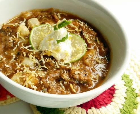 -When you've added the desired amount of chili, add the can of hominy; taste and add more salt if necessary. Now let the soup continue to simmer for 15-20 minutes.