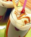 Put a 1/2 cup scoop of frozen yogurt into each float. Serve with straws and dessert spoons.