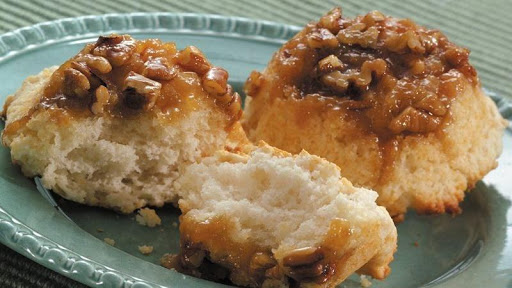 3 Bake 11 to 13 minutes or until golden brown. Turn pan upside down onto cookie sheet. Leave pan over biscuits a few minutes to allow brown sugar mixture to drizzle over biscuits. Replace topping from pan on biscuits. Cool slightly before serving; serve warm.