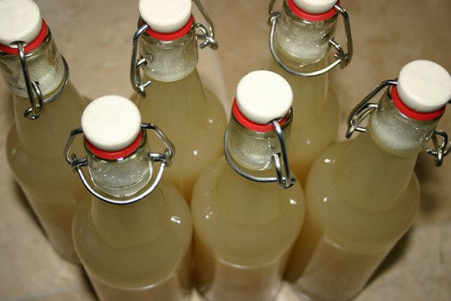 Stir well. Cover with a cloth to protect from flies and leave to ferment in the open vessel, stirring periodically, until the ginger beer is visibly bubbly, anywhere from a few hours to a few days depending upon temperature and the potency of the starter.