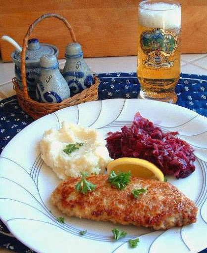 Serve with a lemon wedge. Excellent side dishes are spaetzle, mashed potatoes or any kind of roasted or boiled potatoes.