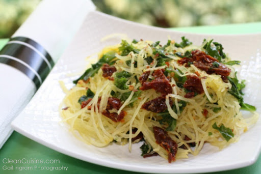 Garlicky Spaghetti Squash, Kale & Sundried Tomato Entree