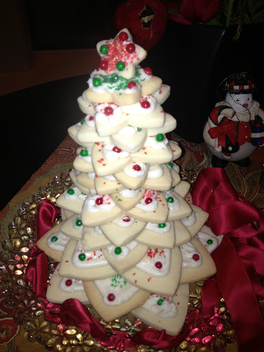 Use the 12 cookies cutters from Crate and Barrel to make a Christmas tree and ice and decorate with little coloured balls.