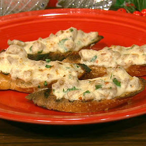 3. Grill the slices of baguette, transfer to a sheet tray and spoon the sausage mixture on top. Place in the oven on broil until golden and bubbling, about 3 to 4 minutes. Remove from the oven and garnish with chopped parsley.