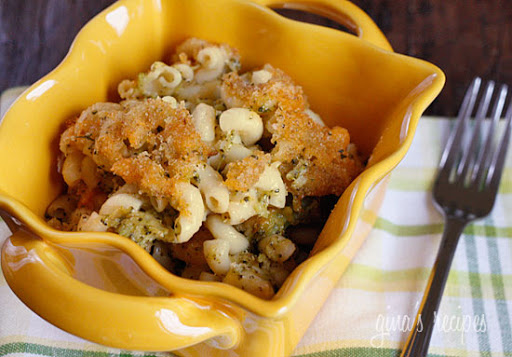 1. Cook pasta and broccoli together in a large pot of salted water, according to package directions for al dente (or slightly under cook 2 minutes). Spray a baking dish with cooking spray. Preheat oven to 375°