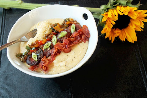 Smothered Grits with Jalapeno Sausage and Bacon