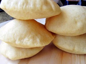 # Cut the sides and top of a gallon freezer bag. Open the bag and place a dough ball on the right side of the bag. Cover with the other side and flatten the dough balls into 6½-inch or ¼ inch thick rounds. Place 4 pieces of flattened dough on the parchment and slide onto the hot sheet pan. Bake for 2 to 4 minutes or until completely puffed up. Remove with a spatula, transfer into a plate, and cover with a moist towel while baking the remaining dough. Enjoy while still warm.