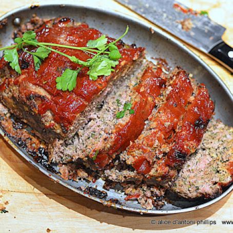 Crumble the ground meat together in a large mixing bowl. Set aside. In another small bowl, combine the beaten eggs, garlic, salt, basil, oregano, parsley/cilantro, mustard and chili flakes and blend. Blend this mixture into the meat then add the bread crumbs and blend well.