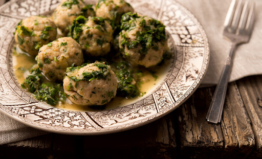 To make the meatballs, simply mix all the ingredients in a bowl and form into small meatballs, about the size of a walnut. To cook, bring a large pot of salty water to a boil and gently lower the fish balls one at a time into the water. They will sink. Turn the heat down to a bare simmer — if you let it boil again, it can destroy your fish balls. Simmer gently until the meatballs float. Look for a total cooking time of about 10 minutes or so.