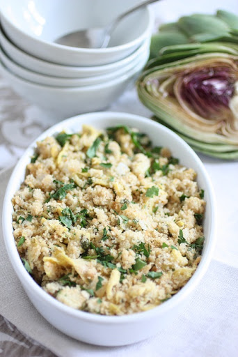 6. Fold in the artichoke mixture and top off with a sprinkle of parmigiano cheese