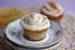 Prepare icing by creaming together the Crisco and butter. Add in powdered sugar and half and half. Once combined, add vanilla, cinnamon, and turbinado sugar. Put the icing into a piping bag or a Ziplock bag with the corner cut off and pipe onto the top of the cupcakes.