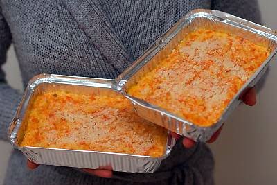 Koka ris och vatten ett tag, tillsätt mjölk. Låt sjuda tills gröten är färdig. Smaka av med salt. Koka morötterna och mosa. Blanda morotsmoset med gröten. Krydda med vitpeppar, muskot och salt. Rör ner ägget. Häll blandningen i en smord ugnsform. Strö över lite ströbröd och eventuellt en klick smör eller lite grädde. Grädda i 175 grader i ungefär en timme.