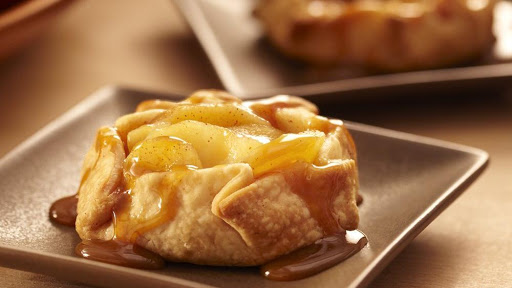Bake 18 to 20 minutes or until crust is golden brown and apples slices are tender. Drizzle 2 teaspoons caramel topping over each crostata. If desired, serve warm with ice cream