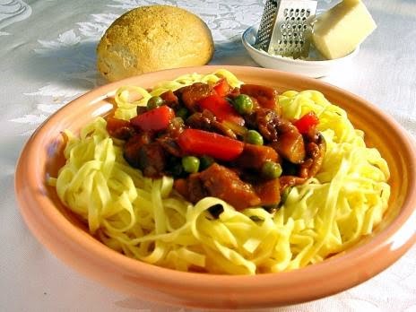 Det är såsen som gör den här rätten. Den passar utmärkt till alla former av pasta och smakar även gott till ris. Servera med färsk-riven parmesanost.