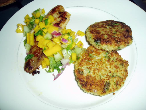 Cajun-fried Tilapia with Mango Salsa served with Couscous Cakes