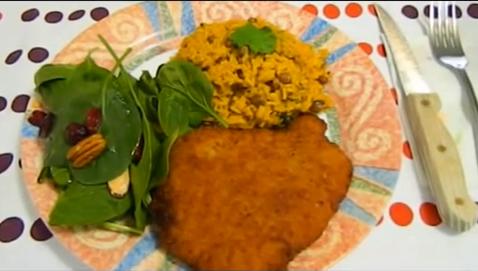 Arroz con Gandules and Breaded Pork Steaks